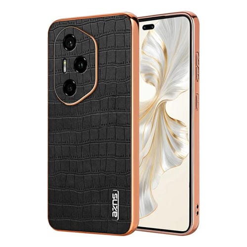 Funda para Teléfono Honor 300 Pro con Cobertura Total y Textura de Cocodrilo Marco Galvanizado (Negra)
