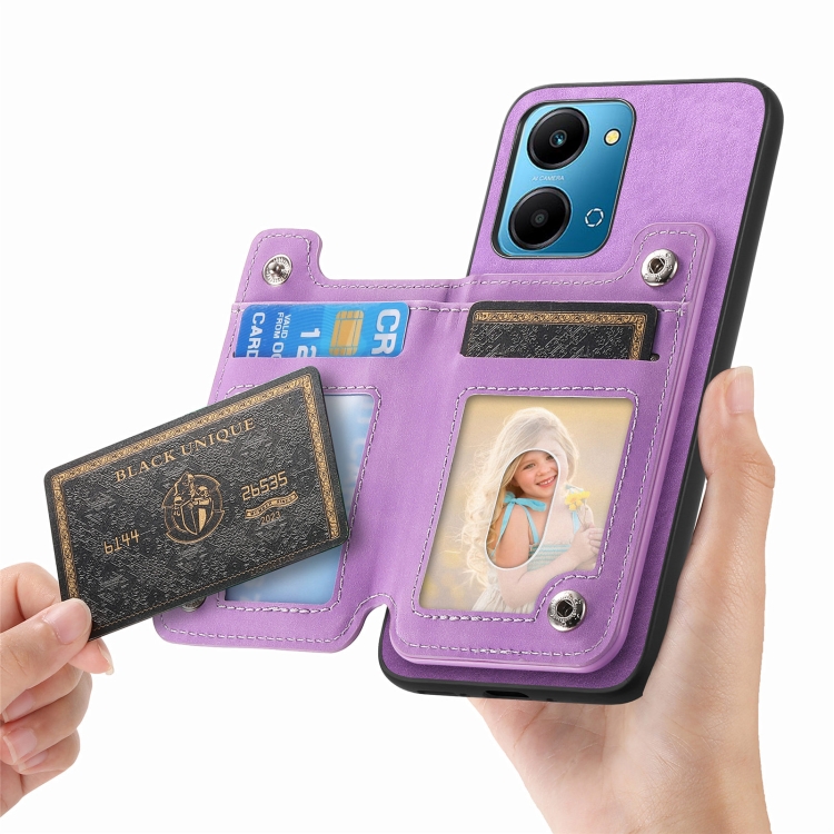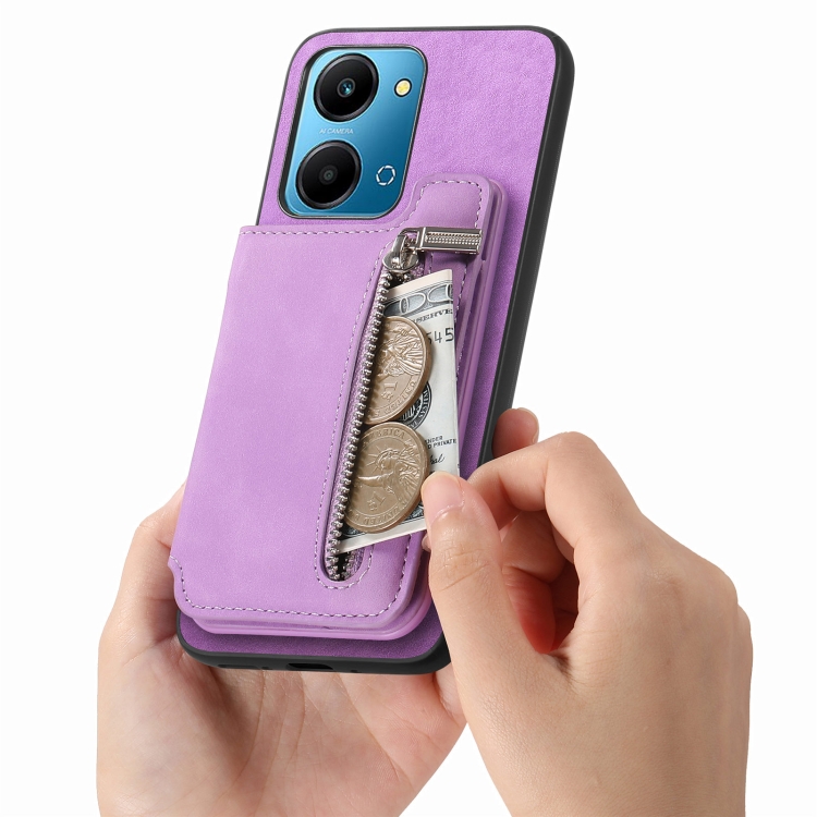Funda para Teléfono Honor 90 con Cremallera Magsafe Retro, Tarjetero, Cartera (Morado)