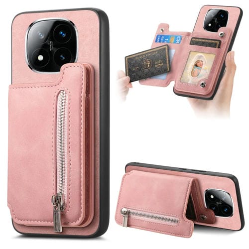 Funda para Teléfono con Cremallera Magsafe Retro para Redmi Note 14 Pro+ 5G (Rosa)