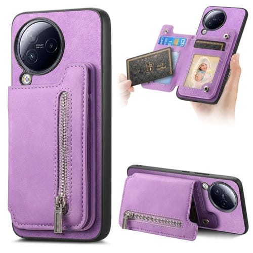 Funda para Teléfono con Cremallera Magsafe Retro para Xiaomi Civi 3 5G, TaRJetero, Funda Trasera (Morado)