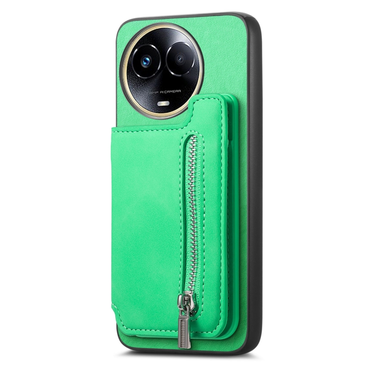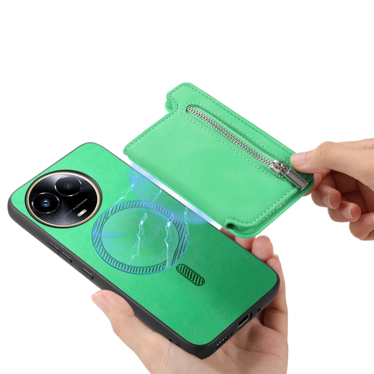 Funda para Teléfono con Cremallera Retro Magsafe para Realme 11 4G Global (Verde)