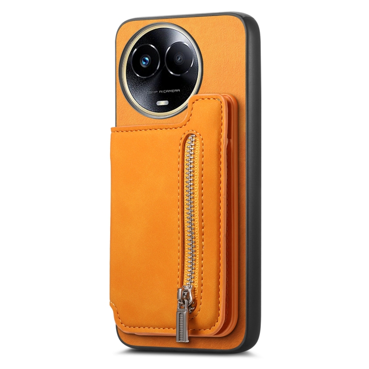 Funda para Teléfono con Cremallera Retro Magsafe para Realme 11 5G Global (Amarilla)