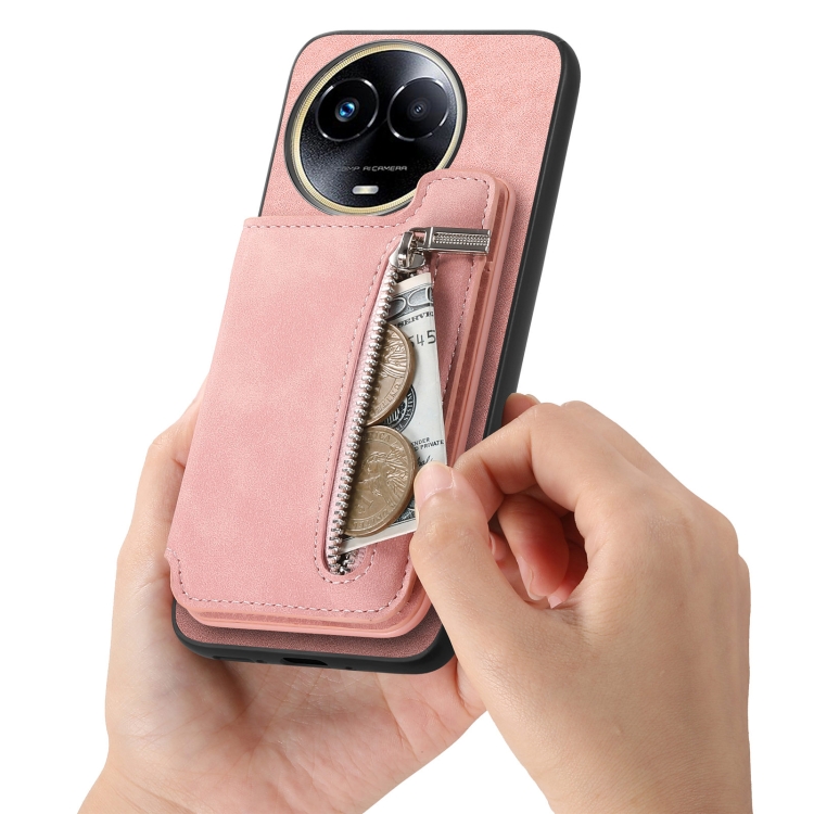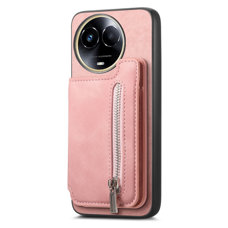 Funda para Teléfono con Cremallera Retro Magsafe para Realme 11 5G Global (Rosa)