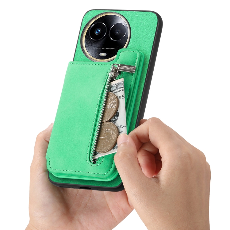 Funda para Teléfono con Cremallera Retro Magsafe para Realme 11 5G Global (Verde)