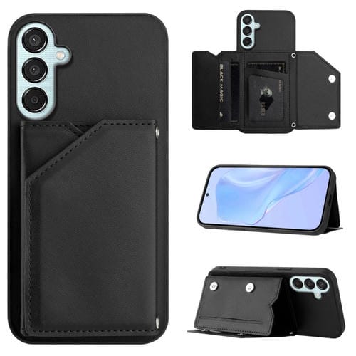 Funda para Teléfono Samsung Galaxy M15/F15 con 4 Ranuras y Correa para Muñeca (Negro)