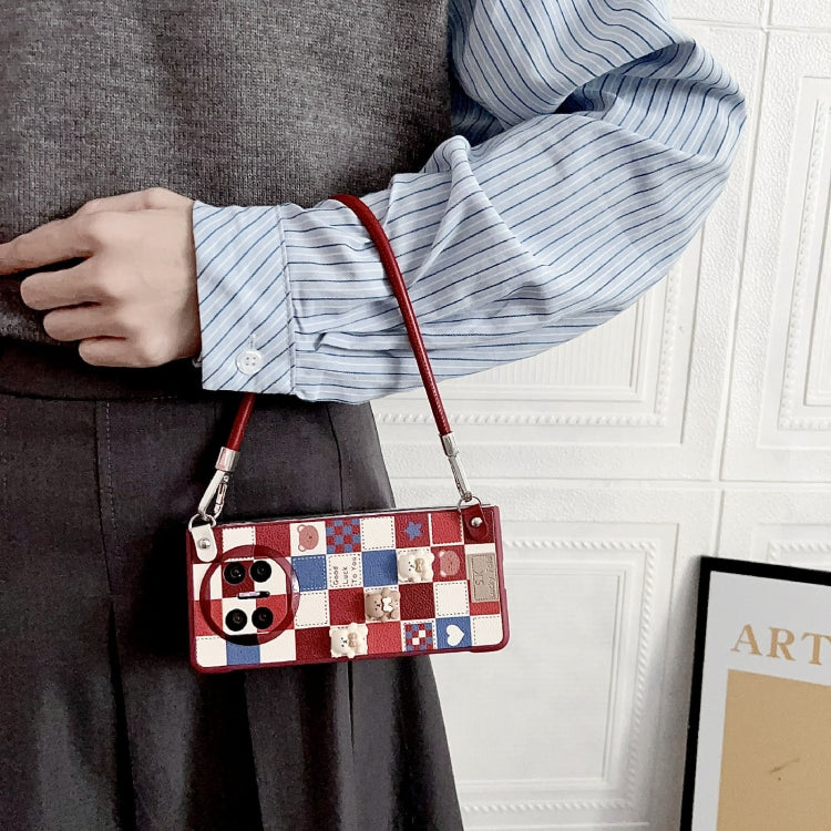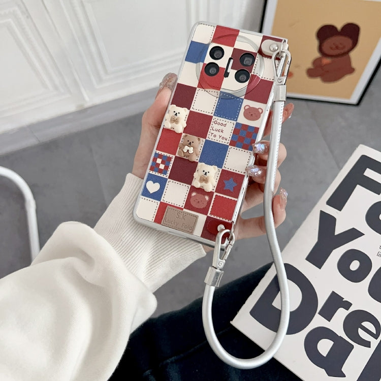 Funda para Teléfono Huawei Mate X5 con Diseño de Osito Enrejado, Cobertura Total y Correa (Plateada)