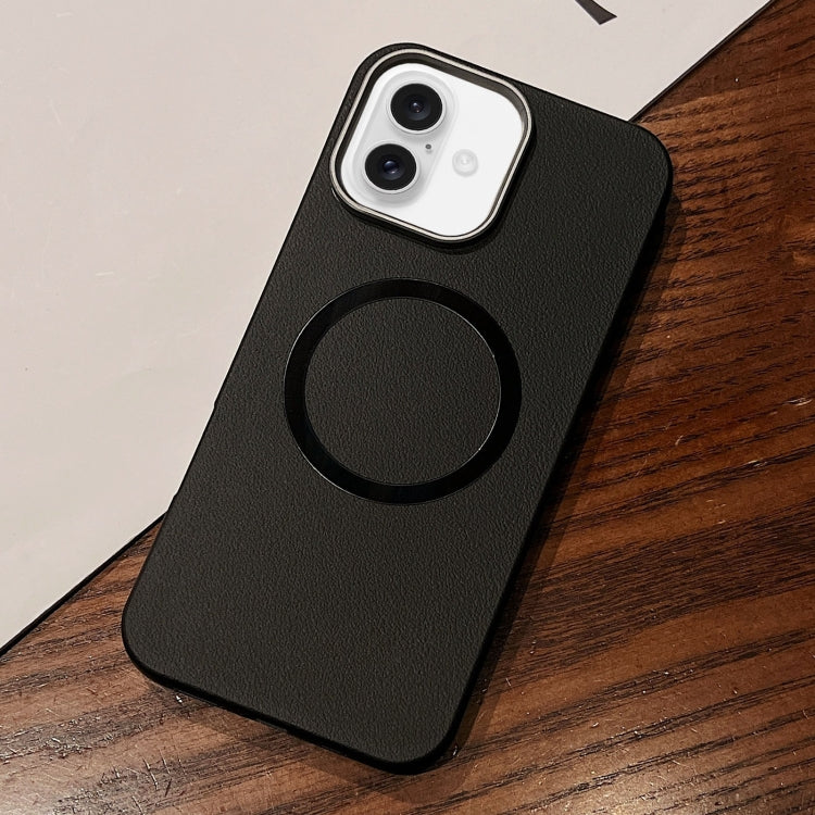Funda para Teléfono Magsafe iPhone 16 Cobertura Total Textura de Cuero (Negro)
