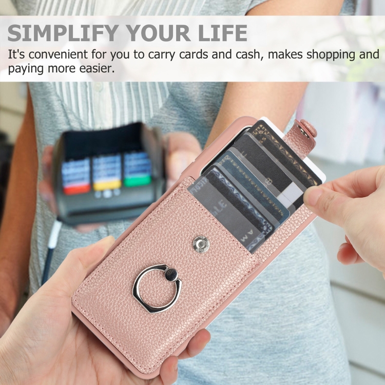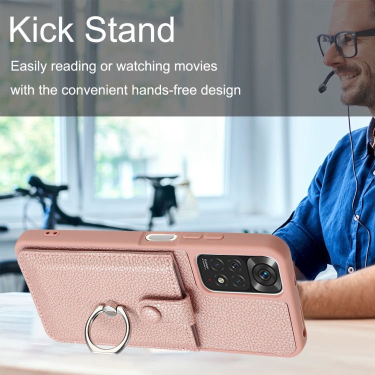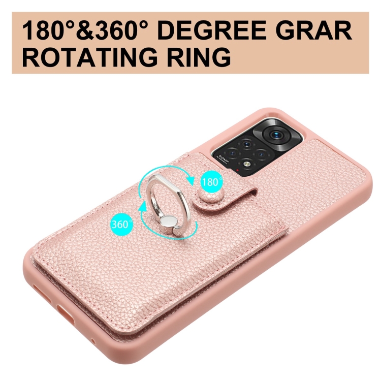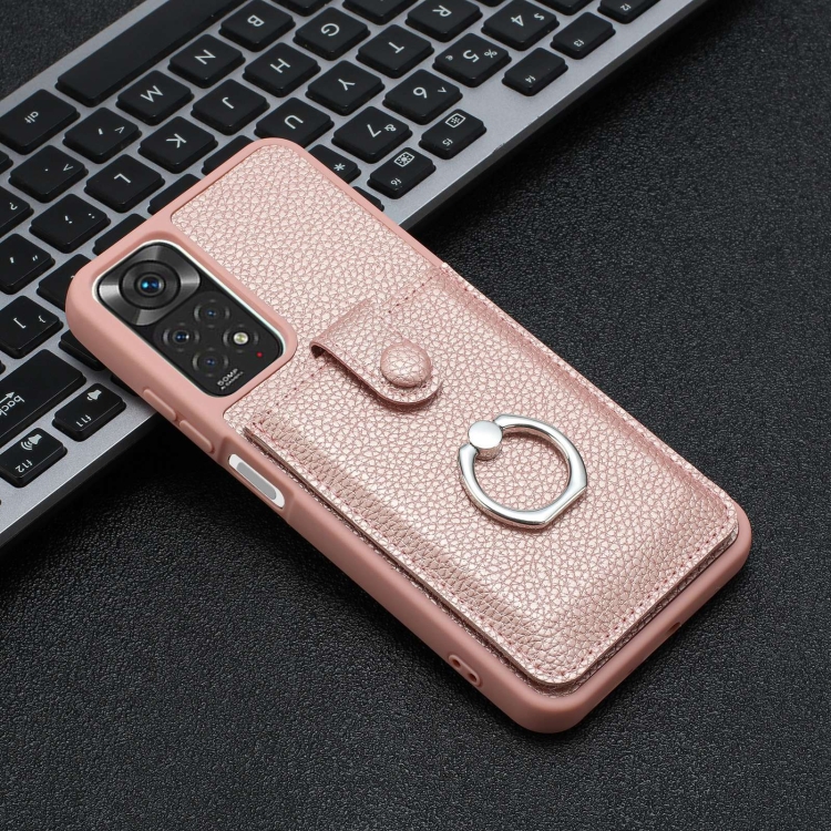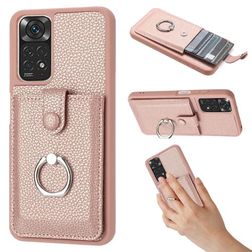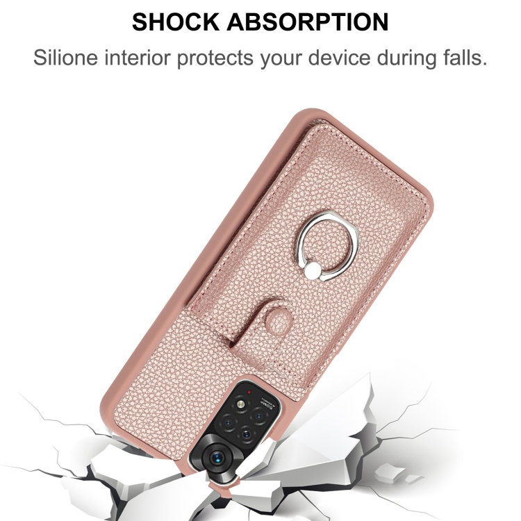 Funda para Teléfono con Diseño de Textura de Lichi y Diseño de Tarjeta con Soporte para Anillo para Redmi Note 11S (Oro Rosa)