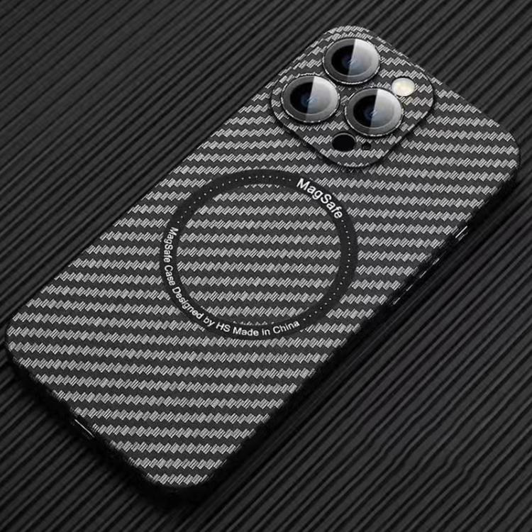 Funda para Teléfono Fibra de Carbono iPhone 16 Pro Max con Película Lente PC Imán Magsafe (Negro)