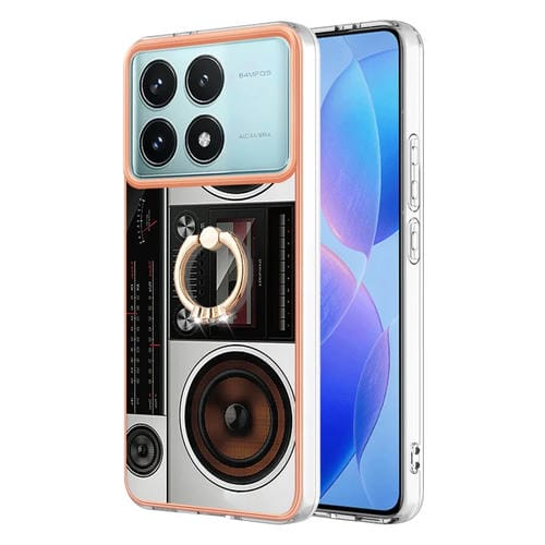 Funda para Teléfono con Galvanoplastia Imd de Doble Cara para Xiaomi Poco F6 Pro 5G con Soporte para Anillo (Radio Retro)
