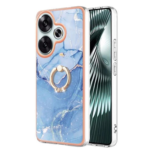 Funda para Teléfono con Imd de Doble Cara con Galvanoplastia de Mármol para Xiaomi Poco F6 5G con Anillo (Azul 018)