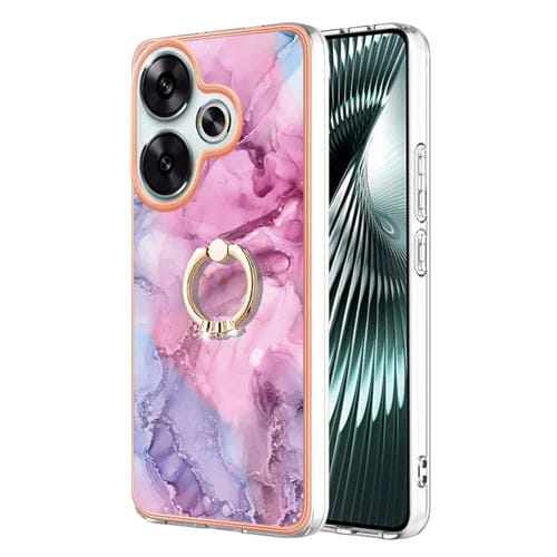 Funda para Teléfono con Imd de Doble Cara con Galvanoplastia de Mármol para Xiaomi Poco F6 5G con Anillo (Rosa 013)