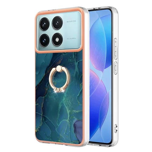 Funda para Teléfono con Imd de Doble Cara con Galvanoplastia de Mármol para Xiaomi Poco F6 Pro 5G con Anillo (Verde 017)