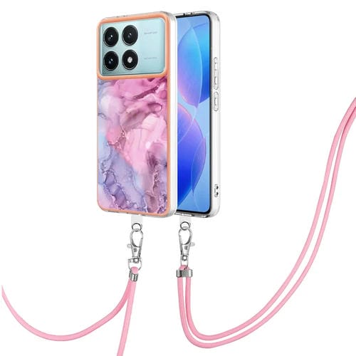 Funda para Teléfono con Imd de Doble Cara con Galvanoplastia de Mármol para Xiaomi Poco F6 Pro 5G con Cordón (Rosa 013)