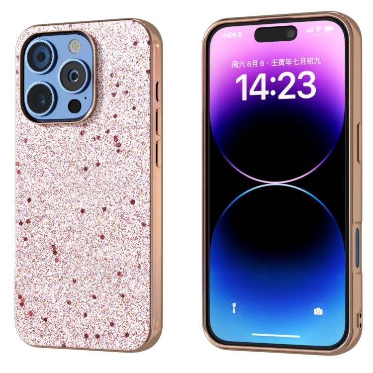 Funda para Teléfono iPhone 16 Pro Marco Galvanizado Purpurina Prueba de Golpes (Dorado y Rosa)