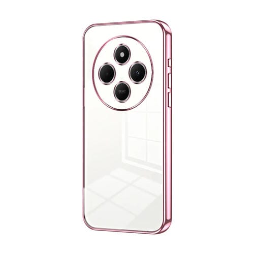 Funda para Teléfono con Orificios Finos y Revestimiento Transparente para Xiaomi Redmi 14R (Rosa)