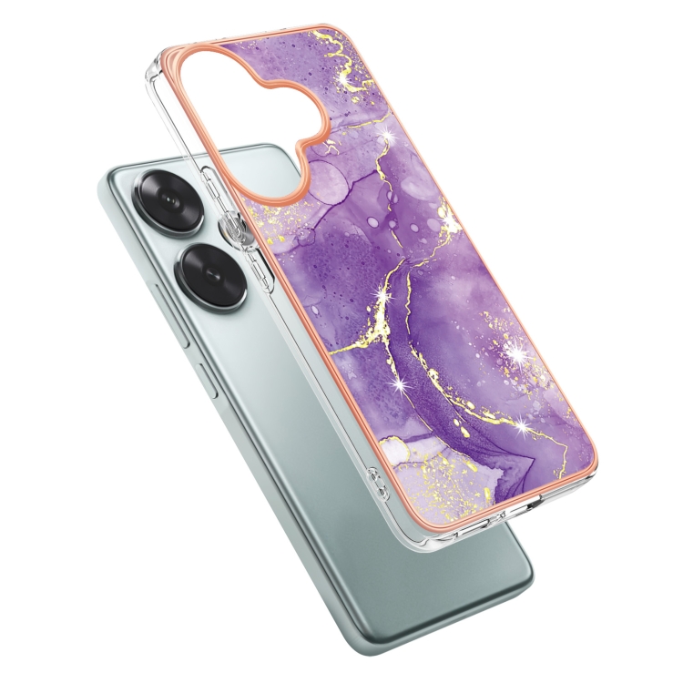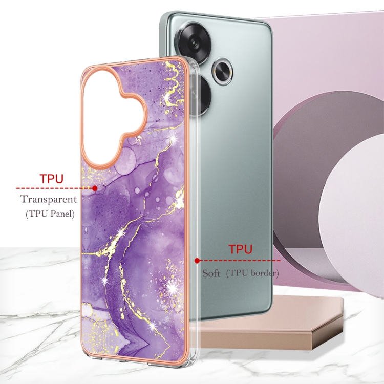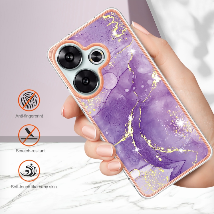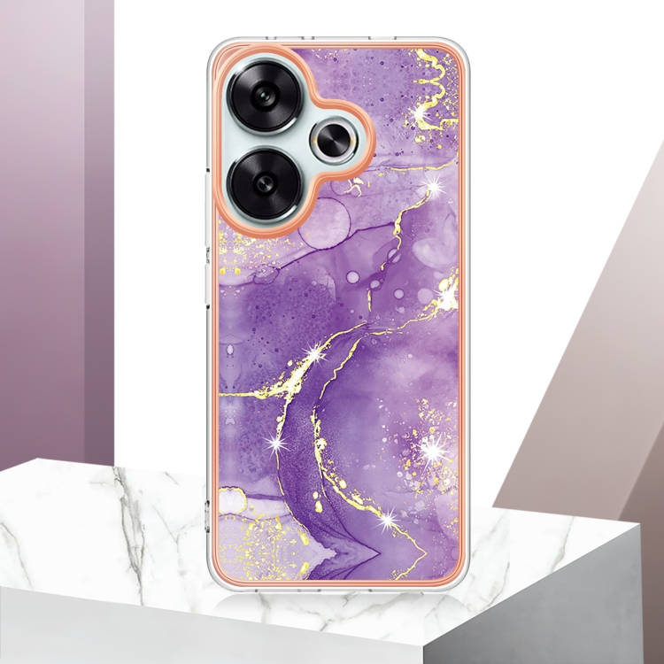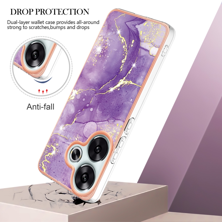 Funda para Teléfono con Revestimiento de Mármol Galvanizado de Doble Cara Imd para Xiaomi Poco F6 5G (Morado 002)