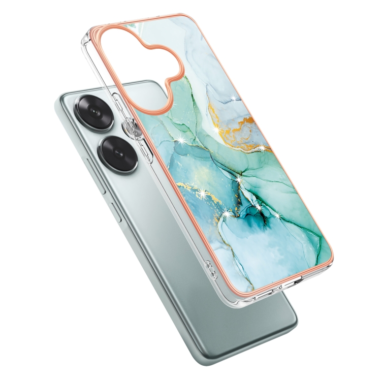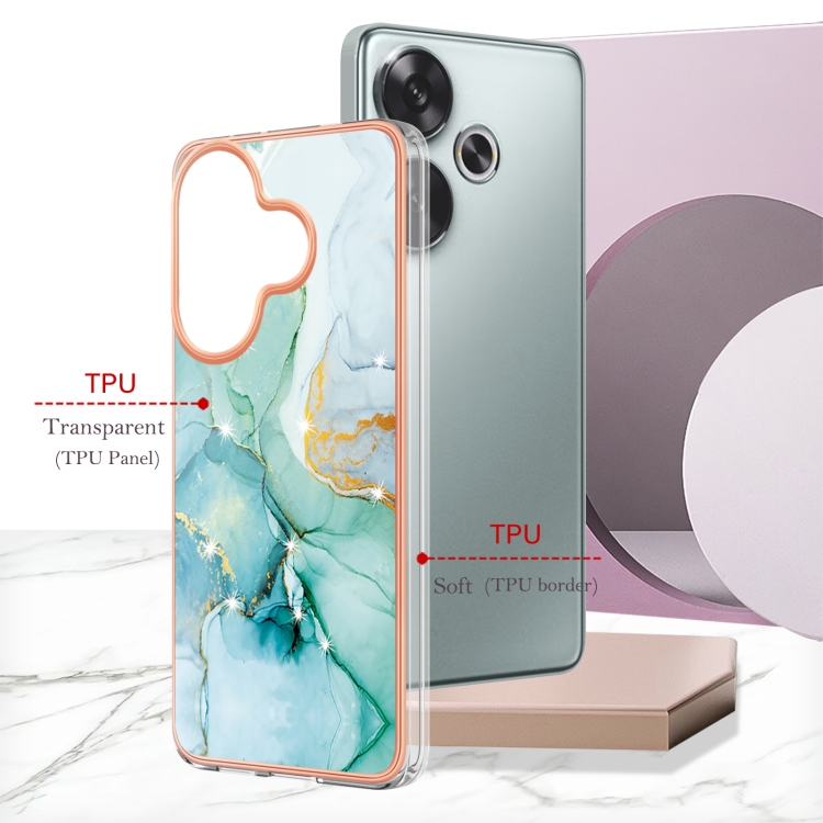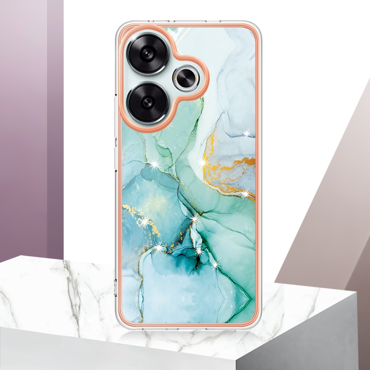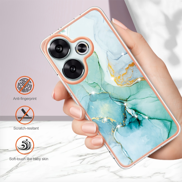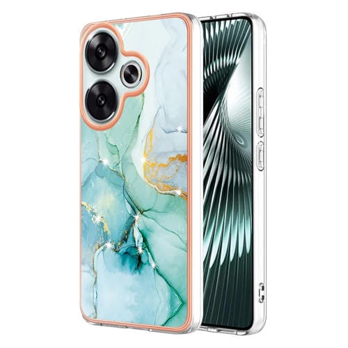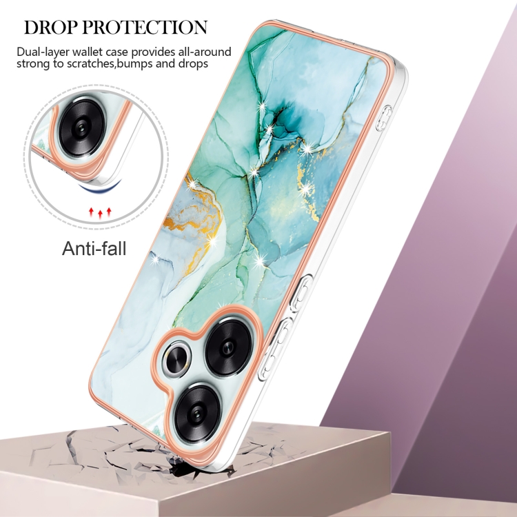 Funda para Teléfono con Revestimiento de Mármol Galvanizado de Doble Cara Imd para Xiaomi Poco F6 5G (Verde 003)