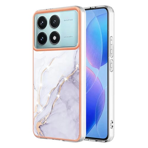 Funda para Teléfono con Revestimiento de Mármol Galvanizado de Doble Cara Imd para Xiaomi Poco F6 Pro 5G (Blanco 006)