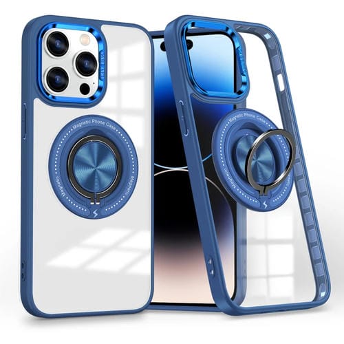 Funda para Teléfono iPhone 14 Pro con Soporte de Anillo Giratorio Magnético (Azul Oscuro)