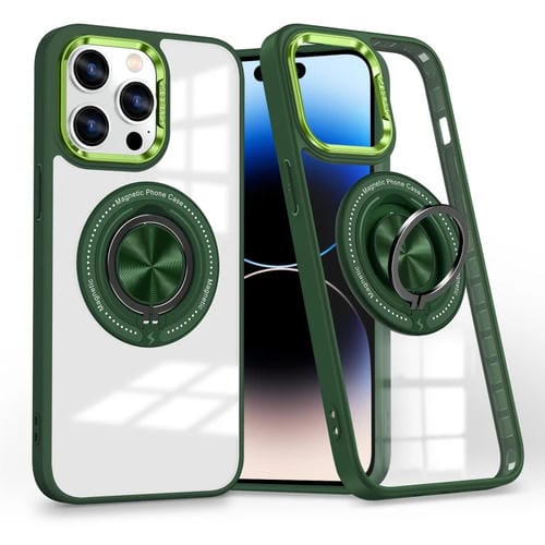 Funda para Teléfono con Soporte de Anillo Giratorio Magnético iPhone 14 Pro (Verde Oscuro)