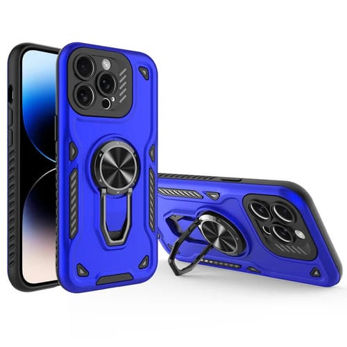 Funda para Teléfono TPU + PC con Soporte Giratorio de Metal para iPhone 14 Pro (Azul Marino)