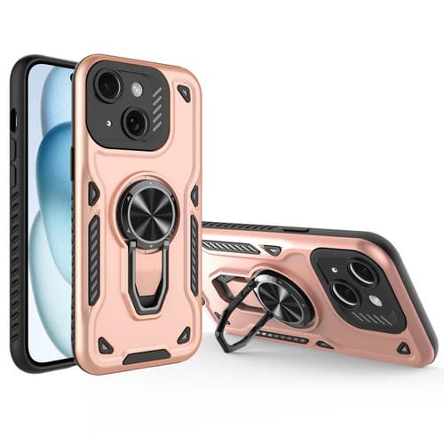 Funda para Teléfono iPhone 15 Plus Soporte Giratorio Metal TPU PC (Dorado)