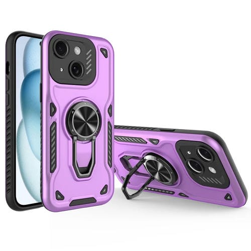 Funda para teléfono iPhone 15 Plus con soporte giratorio de metal TPU + PC magnético (Morado)