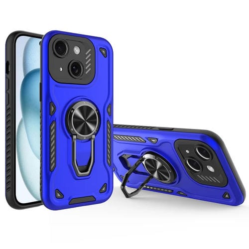 Funda para Teléfono iPhone 15 Plus Soporte Giratorio Metal Carcasa Magnética TPU PC (Azul Marino)