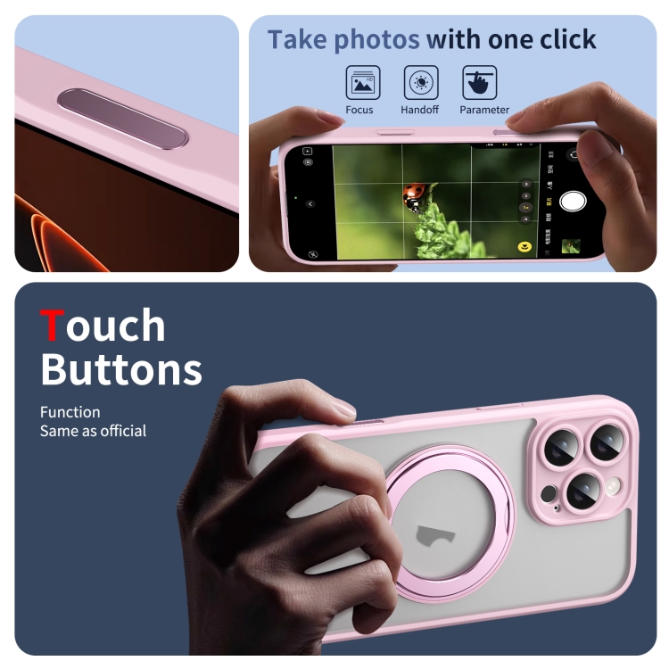 Funda para Teléfono Magsafe iPhone 16 Pro Max Soporte Giratorio Botón Ai (Rosa)