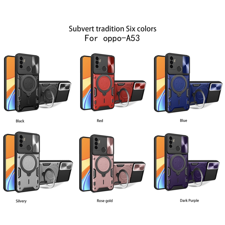 Funda para Teléfono con Soporte Magnético Deslizante con Textura de Cd para Oppo A53 4G (Azul)