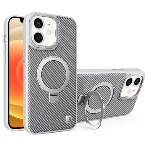 Funda para Teléfono Fibra de Carbono con Soporte Magsafe para iPhone 12 (Gris)