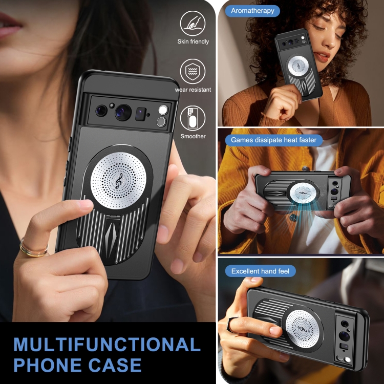 Funda para Teléfono Google Pixel 8 Pro con Soporte Aromaterapia y Disipación de Calor (Negra)