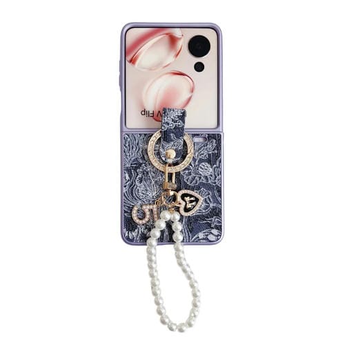• 1x Funda para Teléfono Honor Magic V con Tapa Bordada, Cobertura Total, Cadena de Cuentas y Anillo (Azul)