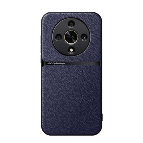 Funda para Teléfono Honor X9B con Tapa Magnética de Cuero de Lichi a Prueba de Golpes (Azul Marino)