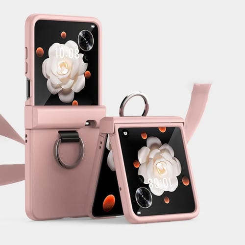 Funda para Teléfono Honor Magic V con Tapa Ultrafina, Bisagra y Anillo (Rosa)