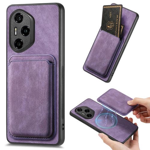 Funda para Teléfono Honor 300 Pro con Tarjetero Cuero Retro y Cierre Magnético (Morado)
