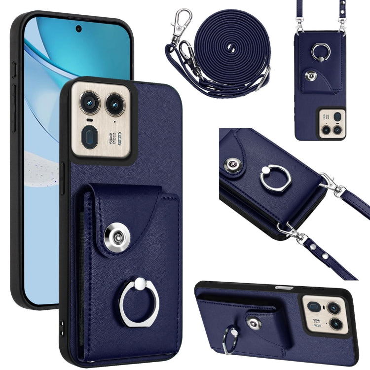 Funda para Teléfono Motorola Moto X50 Ultra con Tarjetero, Anilla y Cordón Largo (Azul)