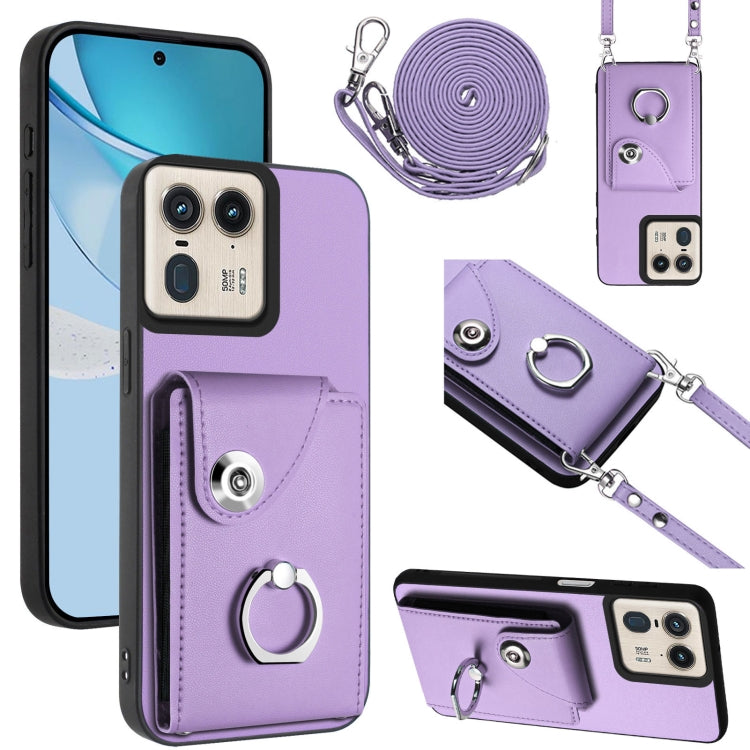 Funda para Teléfono Motorola Moto X50 Ultra con Tarjetero, Anilla y Cordón Largo (Morado)