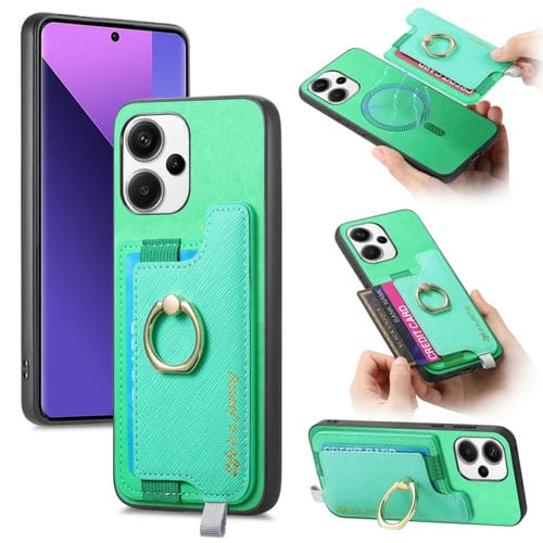 Funda para Teléfono con TaRJetero y Anillo de Cuero con Diseño Retro Magsafe Cross para Redmi Note 13 Pro+ (Verde)