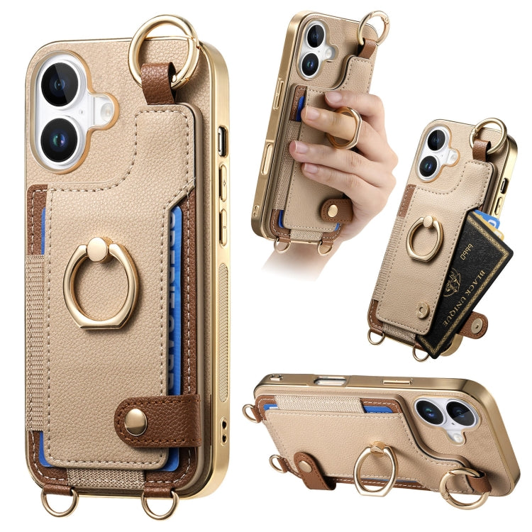 Funda para Teléfono iPhone 16 con Tarjetero Anillo y Lazo para Colgar (Caqui)