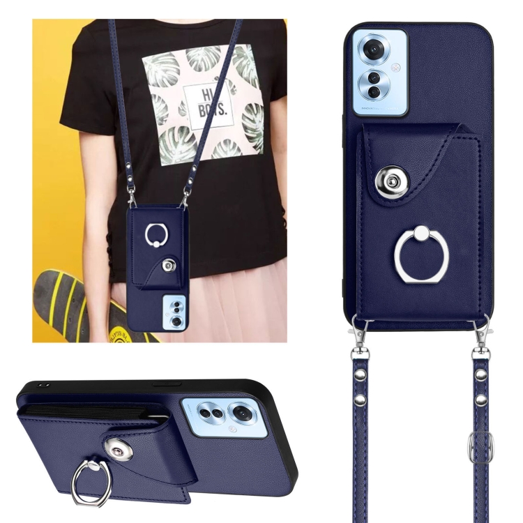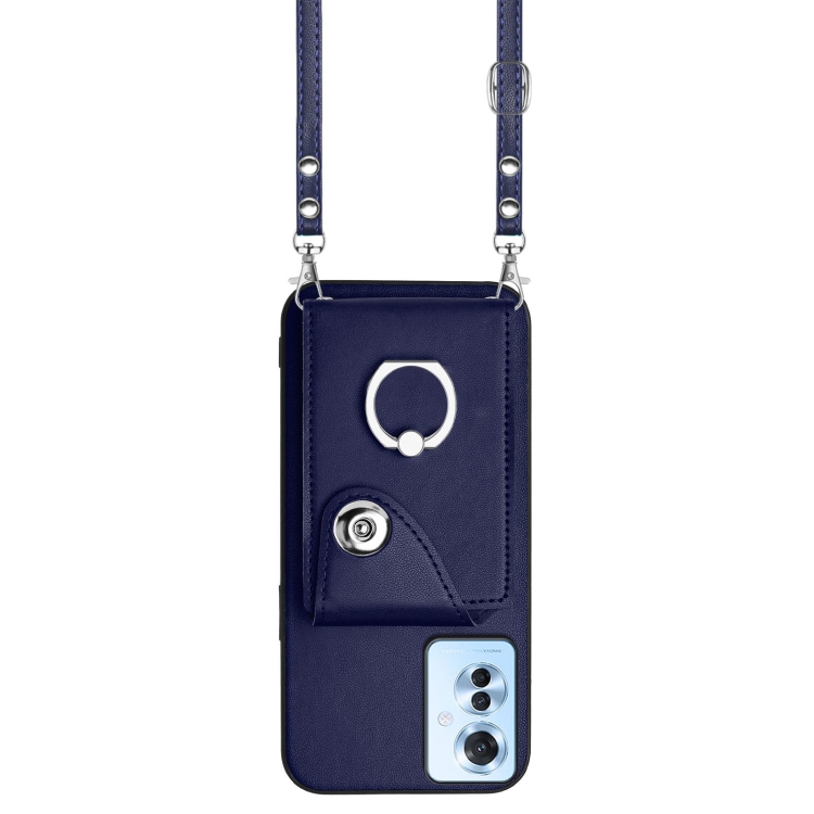 Funda para Teléfono con TaRJetero y Anillo para Oppo F25 Pro 5G, con Cordón Largo (Azul)