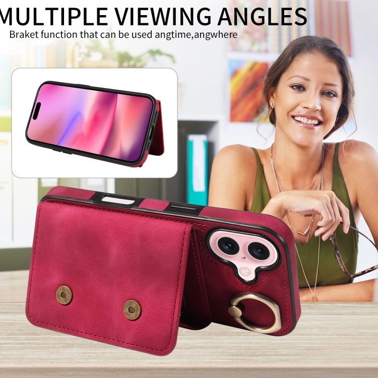 Funda para Teléfono iPhone 16 con Tarjetero y Hebilla de Anilla (Roja)