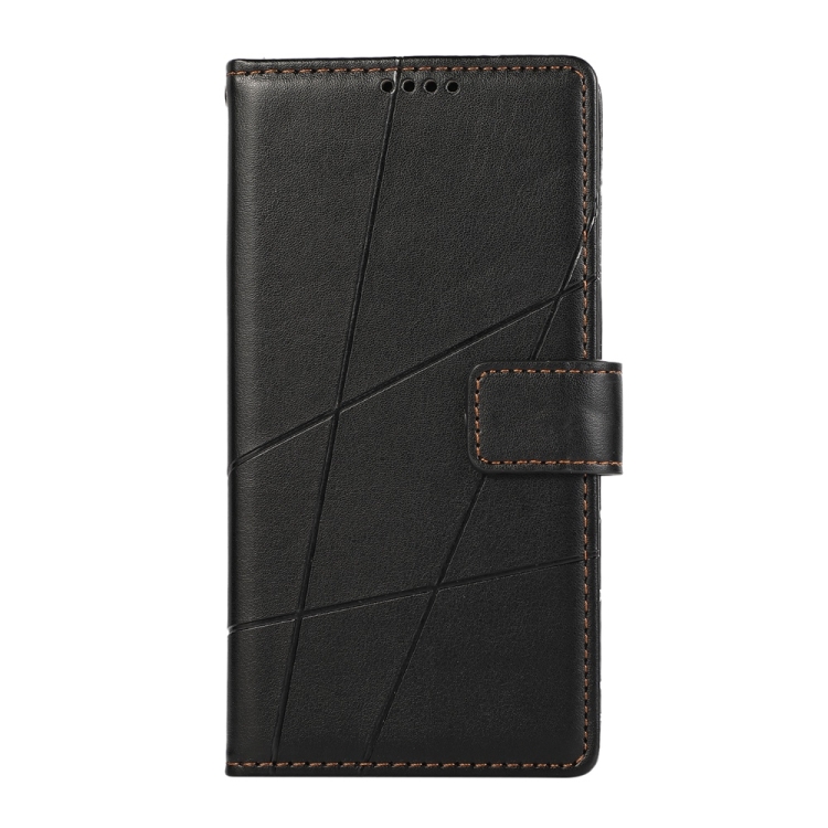 Funda para Teléfono Cuero Genuino Pu iPhone 16 Pro Max Textura Líneas En Relieve (Negro)