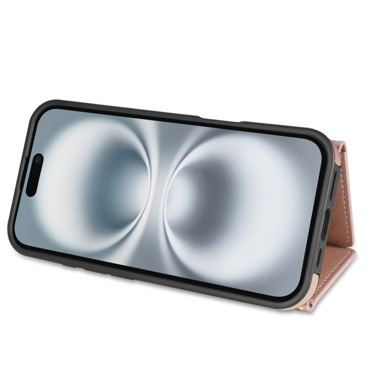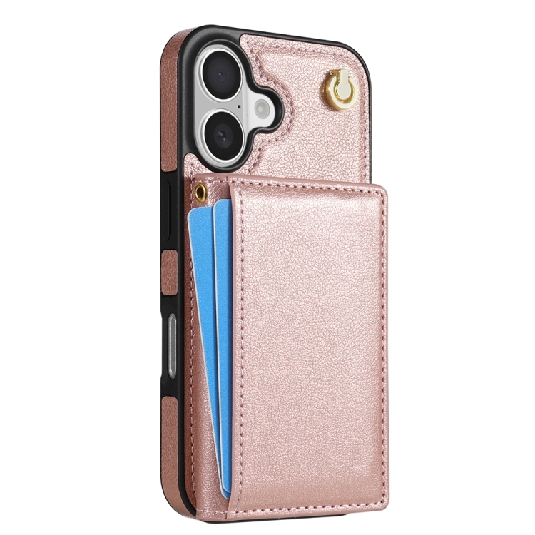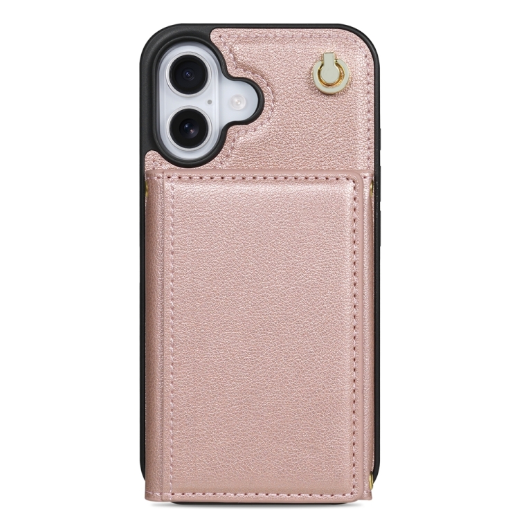 Funda para teléfono Apple iPhone 16 con tres pliegues y cordón largo (Oro Rosa)