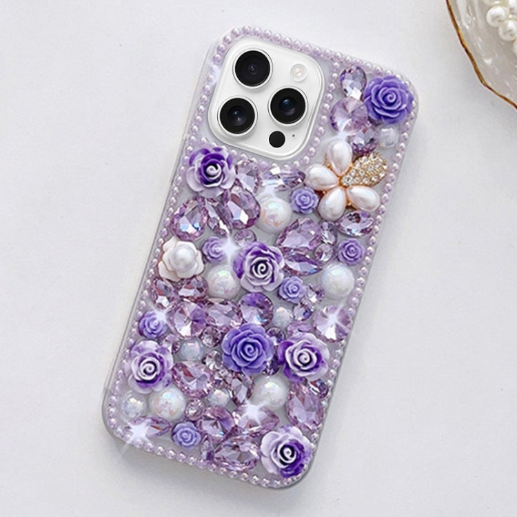 Funda para Teléfono PC con Diamantes Incrustados en Forma de Mano para iPhone 16 Pro Max (Morado)
