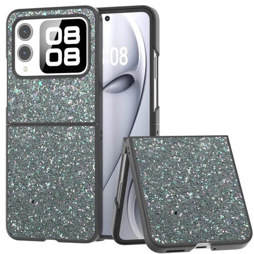 - 1x Funda para Teléfono Huawei Nova Flip con Marco Negro y Purpurina Colorida (Negro y Verde)