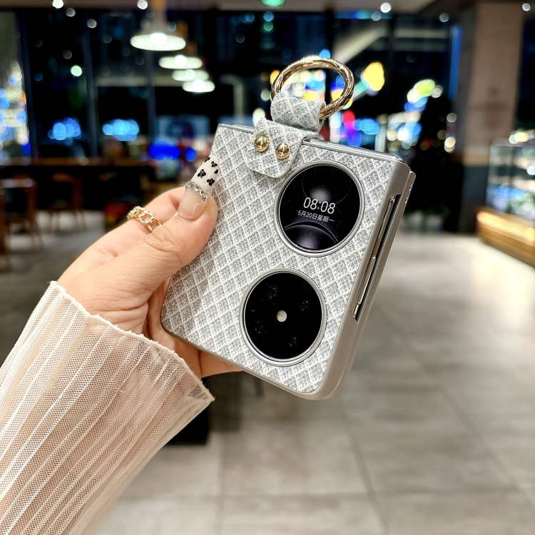 Funda para Teléfono Huawei P50 Pocket con Diseño de Rombos, Diamantes Brillantes y Anillo (Dorado)