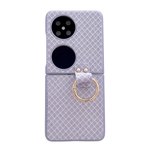 Funda para Teléfono Huawei P50 Pocket con Diseño de Rombos, Diamantes Brillantes y Anillo (Morado)