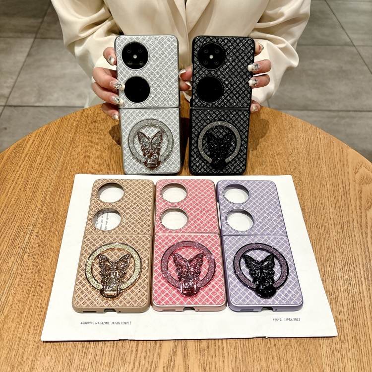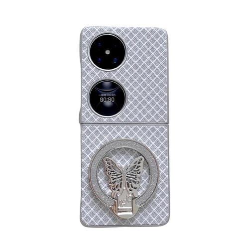 Funda para Teléfono Huawei P50 Pocket con Rombos, Diamantes y Soporte para PC (Plateada)
